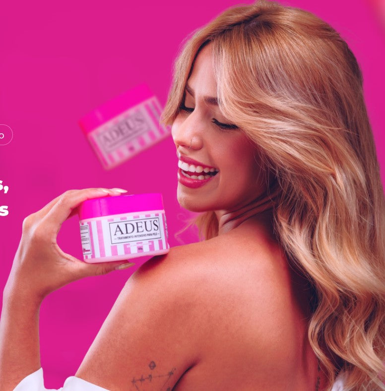 Adeus Cream cellulite and stretch mark cream in pink striped 300g container for intensive skin treatment